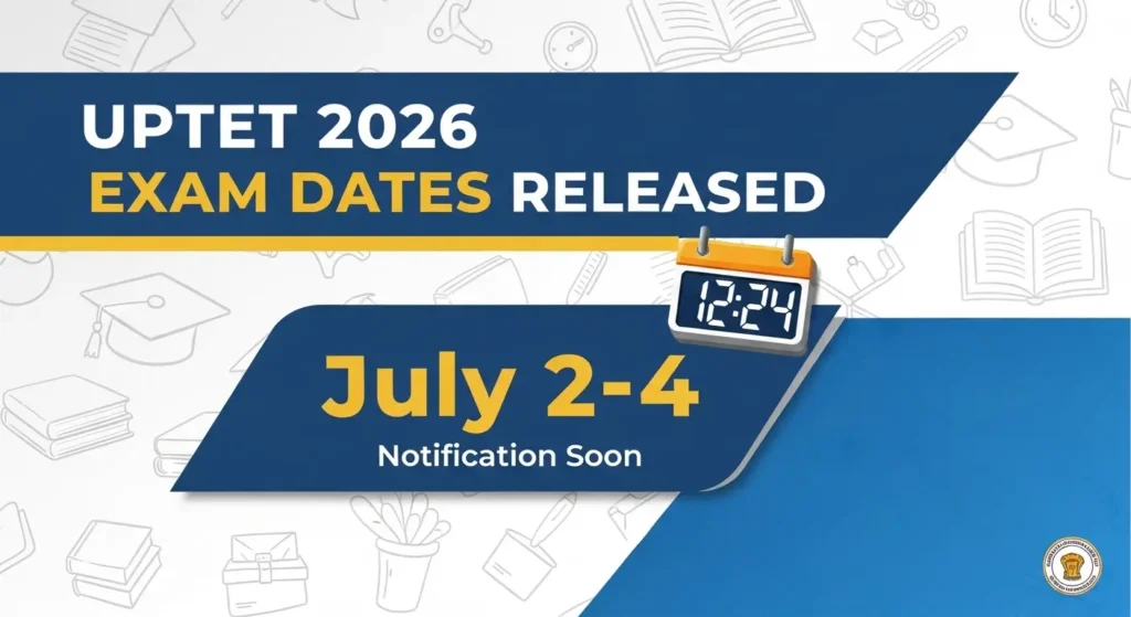 Uttar Pradesh Education Service Selection Commission (UPESSC) ने UPTET 2026 की Exam Dates Announce कर दी हैं। परीक्षा 2, 3 और 4 जुलाई 2026 को आयोजित की जाएगी। Official Notification जल्द ही UPESSC website पर Release होगी।